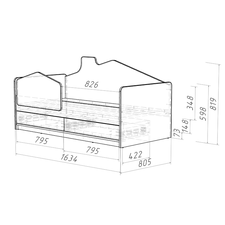 Длина/Ширина/Высота (мм) 1634 × 805 × 820