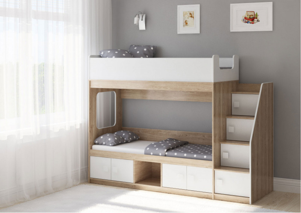 Двухъярусная кровать Легенда D605.3 - современный дизайн и и продуманные места хранения .